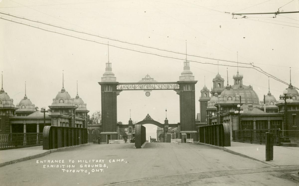 Physically and emotionally depleted from the trans-Atlantic crossing, Victoria Huffam-Docherty boarded the specially-designated CPR troop train bound for Toronto on the afternoon of Saturday, January 11 with the other wives, children, and soldiers. Travellers wended their way down the aisle in their assigned day coaches and settled into the cloth covered bench seating built for two, ensuring the windows were fully shut to protect against the January temperature and climate of Eastern Canada. Most passengers attempted to sleep during the two-day trip, but frequently caught glimpses of Red Cross nurses who moved through the coaches to attend to the health needs of the women and children. On Monday, a bitterly cold January day, the troop train rumbled towards Toronto’s Exhibition Grounds, which had been transformed into a temporary military camp in 1914.